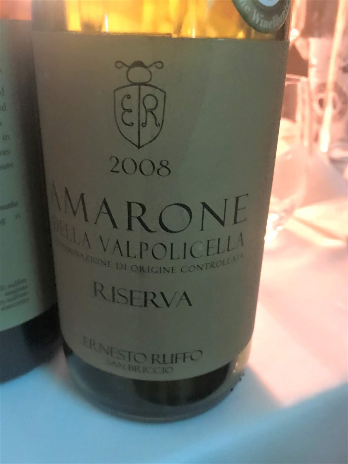 Kvällens avslutande vin är deras Riserva från 2008. Ungefär samma druvsammansättning och samma växtplats som för Amarone och lika lång torkningsperiod av druvorna. Det som skiljer Riservan från Amaronen är att de absolut bästa druvorna valts till Riservan samt att den ligger två år längre på ekfat än Amaronen. Det gjordes 665 flaskor.